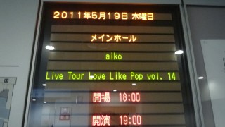 Love Like POP142011年5月20日@グランキューブ大阪 この日はグランキューブ大阪Fj列、すわなち2階最後列。・・・・・・遠っっ!!まじaikoちっさ!!!!城ホール来たかと思いました。いやほんまに1900 aikoコー...