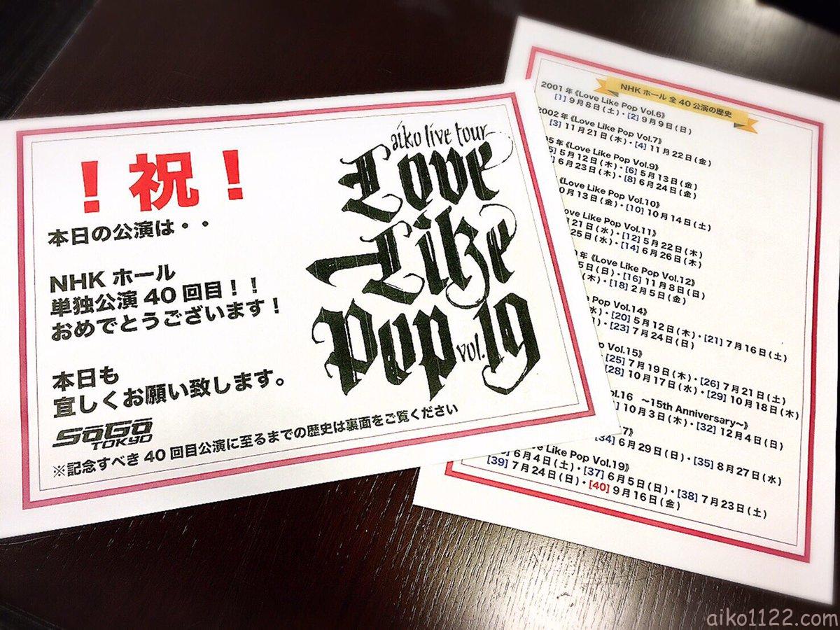 LLP19ツアーも残すところあと3公演となり、地方公演は愛媛でラストです😭😭みきゃん、バリィさん、タルト人と共に今日も頑張ります❗️よろしくお願いします🙇 pic.twitter.com/tzCmQg5BIc— aiko official (@aiko_dochibi) 2016年9月11日